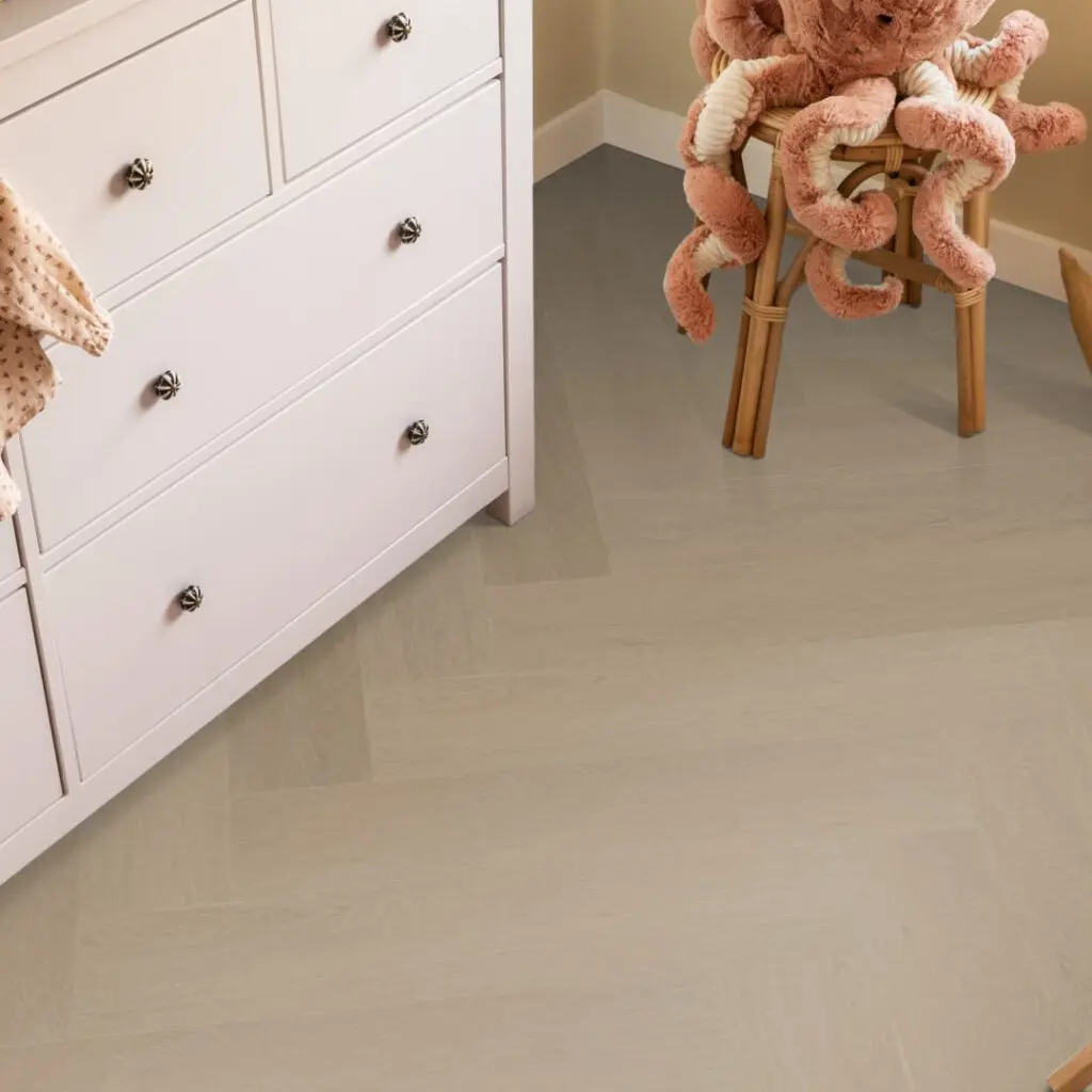 Visgraat is dé trend van dit moment. Het natuurgetrouwe dessin van de Spigato Estino visgraat is een eyecatcher in ieder interieur. Door de stijlvolle kleuren, krijgt jouw interieur direct een warme uitstraling. De mogelijkheden zijn eindeloos. De click variant van deze vloer is voorzien van een 10 dB geluiddempende onderlaag, hierdoor is de vloer heerlijk stil.