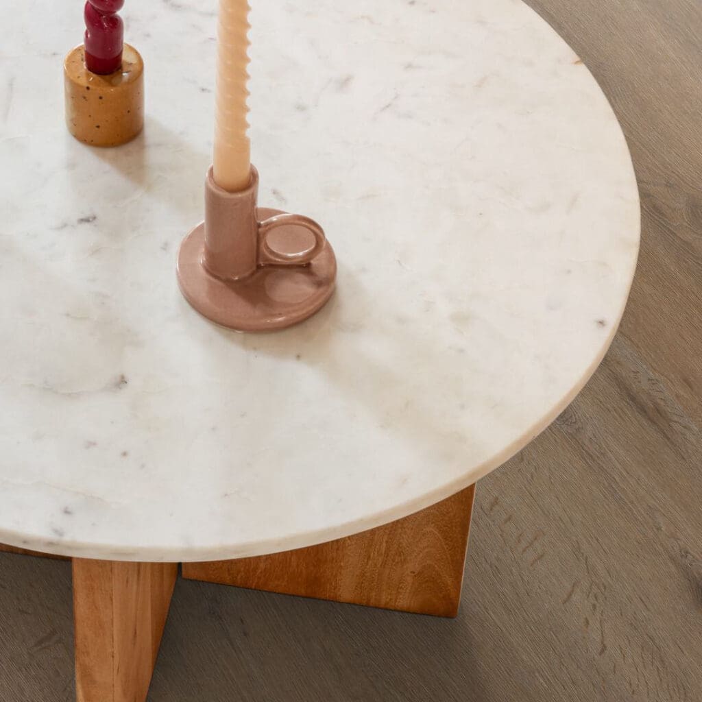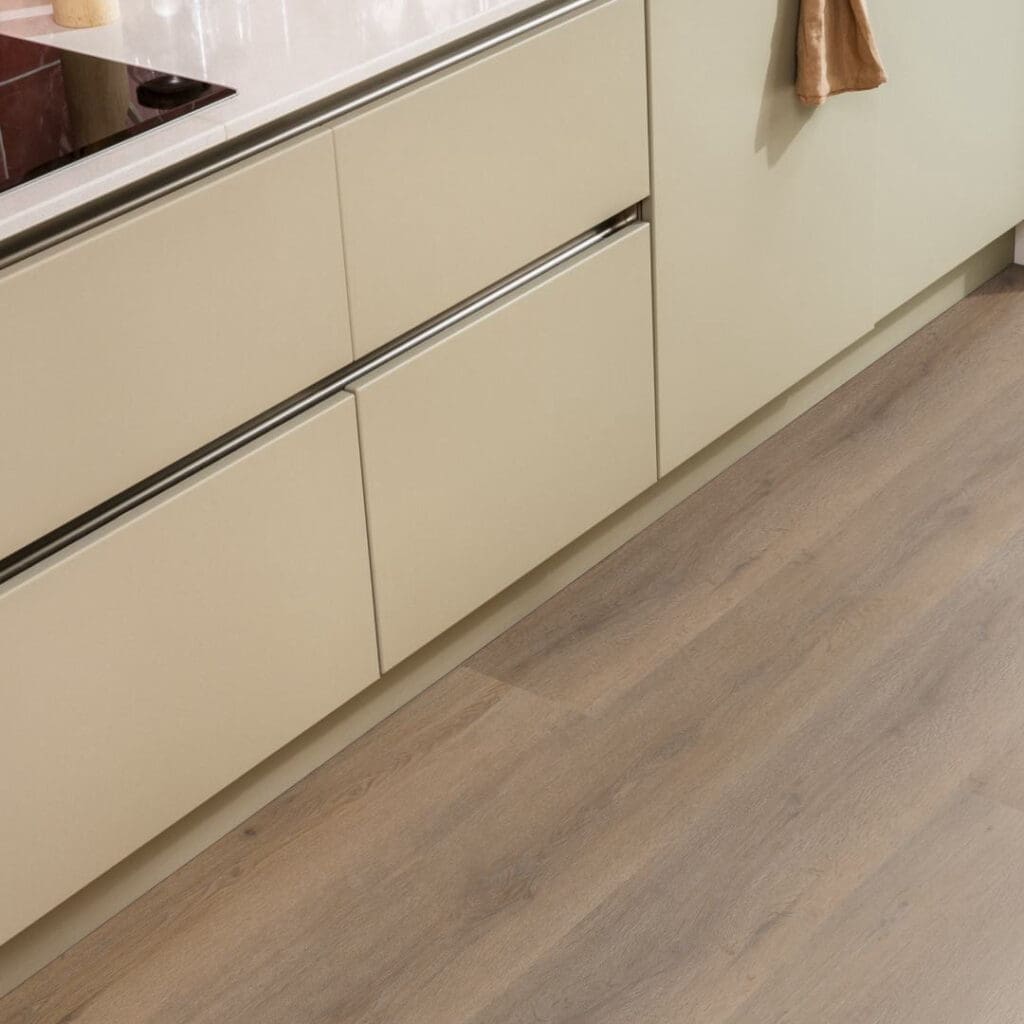 De Vivero is een pvc vloer met een natuurlijke houten uitstraling, geschikt voor elk interieur. Door de lange planken van maar liefst 152 cm lijkt je ruimte een stuk groter en wordt de beleving van een echte houten vloer extra benadrukt. Deze vloer is eenvoudig te leggen door zijn 7 mm dikte en is voorzien van geïntegreerde ondervloer. Hierdoor is de vloer ook geschikt voor appartementen vanwege de geluidsreducerende werking.